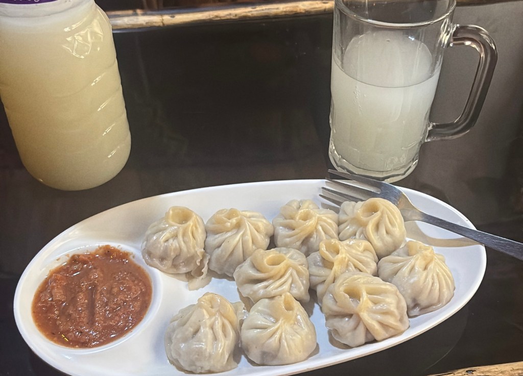 ベジモモ(130NPR)とネワリ族のお酒Changチャン(1 リットルでたったの150NPR)