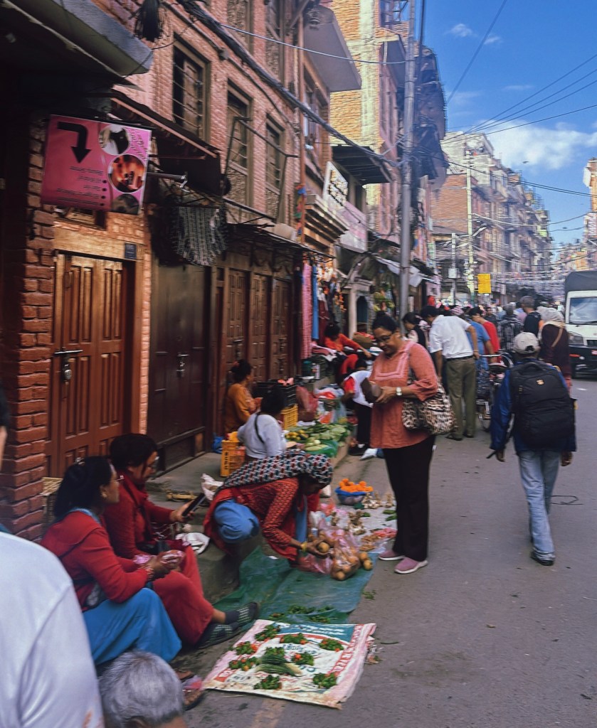 さてさて、パタンの旧王宮広場から南に伸びる一本道で朝市が毎朝開催されています。